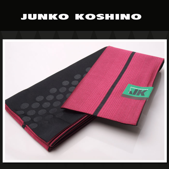 半幅帯 JUNKO KOSHINO 紫色とピンク パープル 大柄幾何学模様と縞