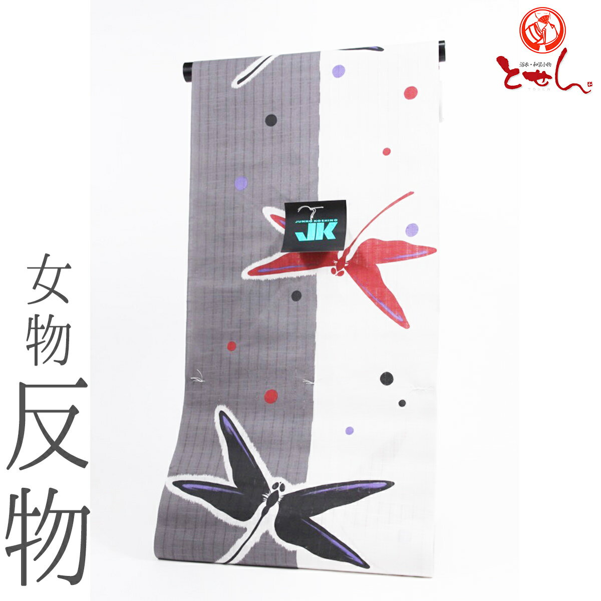 呉服屋 訳あり 女物 浴衣 反物 グレー×黒×赤(蝶) コシノジュンコ JK Junkokoshino ブランド 小幅 両耳 生地 上品 女浴衣 ゆかた お洒落 実店舗キャリー在庫 レトロ ロマン 古典柄 日本製 夏着物 レディース 婦人物 女 送料無料 送料込み