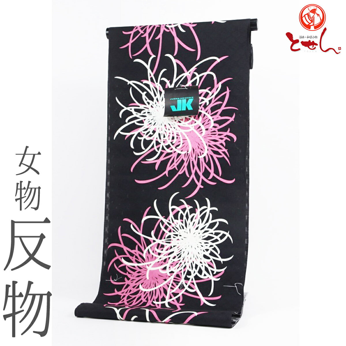 呉服屋 訳あり 女物 浴衣 反物 黒×白×ピンク(菊) コシノジュンコ JK Junkokoshino ブランド 小幅 両耳 生地 上品 女浴衣 ゆかた お洒落 実店舗キャリー在庫 レトロ ロマン 古典柄 日本製 夏着物 レディース 婦人物 女 送料無料 送料込み